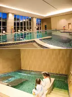 The hotel has an indoor pool, gym, and hot spring ♨️.