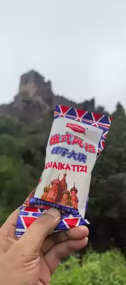At Dita, we climbed up a vertical iron ladder, which is almost the highest point. Then, we descended another vertical iron ladder on the other side and walked a short distance to Houjiulian. From there, we could continue along the path beside the Great Wall to the cableway station and take the cableway down the mountain. We chose to descend the stone steps beside the Great Wall. The descent was relatively easy, and we returned to the Great Wall at Dita, then descended to Shangpufang to rest for a while. We ate a Shanhaiguan ice cream that the vendors were eagerly selling and listened to them explain the origin of the name Jiaoshan Great Wall. It turns out that the Laolongtou Scenic Area in Shanhaiguan is the head of the Great Wall, the ancient city is the eyes of the dragon, and Jiaoshan is the dragon's horn, hence the name.