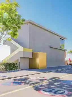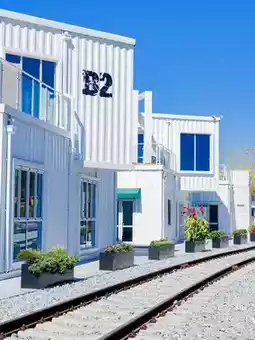 The railway tracks and white houses make for fresh photos.