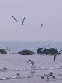 The wind was cold and the sea seemed to rush towards the shore with fearless courage; even in the severe cold, the seagulls were still dancing, and their figures added a touch of agility to this cold world.