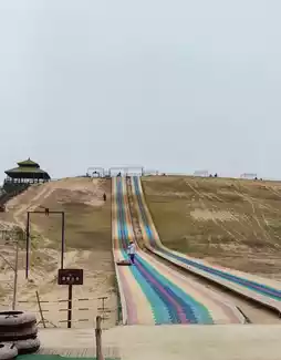 Changli Sand Sculpture World is unique for its sand sculpture landscape. During the sandboarding process, you will find a variety of exquisite sand sculptures around you. There are tall and mighty historical figures, and cartoon sand sculptures full of childlike fun, which complement the golden sea of sand to create a magical world of art. Sliding down the sand dunes next to the sand sculptures is like traveling through history and fairy tales, with each sand sculpture being a unique landscape, allowing you to experience the thrill of sandboarding while also appreciating the charm of art.