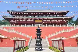 2. Jixin Temple has a history of over 800 years. The temple is surrounded by mountains on three sides and faces a canyon on the other. There is a square in front of the temple, which faces Bohai Bay, and green mountains and cypress trees behind it.