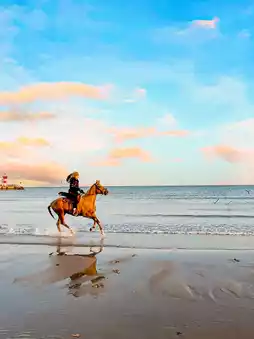 🐴Between the sea and the sky, the sound of horse hooves echoes with the waves. Ride a horse and walk slowly along the coastline. The sky in the distance is dyed a charming pink and purple, and the waves beside you are surging with the whispers of winter. Every step is like stepping into a poem of time, gentle and deep.