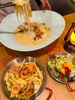 🍜When you're tired, find a warm light and let a bowl of seafood noodles soothe your hunger. The steaming heat carries the gifts of the sea, with tender shellfish and chewy shrimp dancing with the rhythm of the ocean on the tip of your tongue. It is the warmest warmth in winter, from the taste buds to the heart.