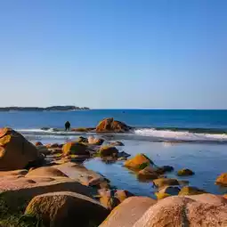 🏖️ Tiger Stone: Century-old bathing beach with stunning rock formations! Rent bikes for Zhonghai Beach ride (30 yuan/hour)