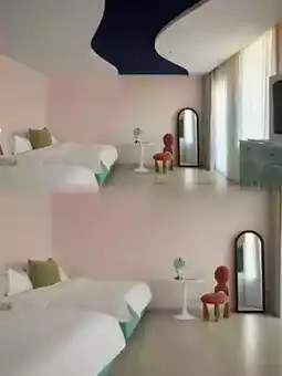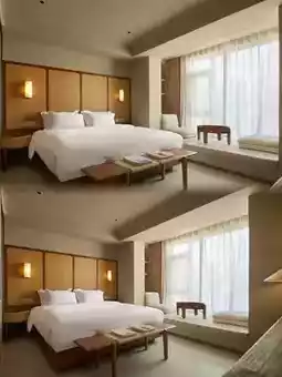 On the super large bed, the soft white bedding is as fluffy as clouds. Lying down feels like being gently embraced, making me feel like I could sleep soundly until morning~ At the foot of the bed, a wooden low bench neatly holds folded towels and a few interesting books. Flipping through a few pages before sleep is pure bliss.
