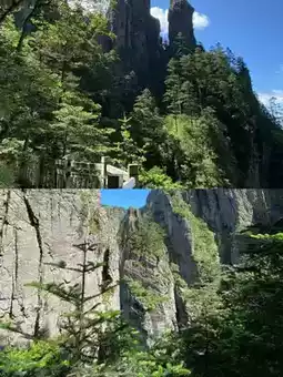The Dragon Ridge Great Wall, looking north from the Purple Gold Peak, is a steep mountain ridge that resembles a giant dragon winding and undulating, rushing into the layers of peaks of the Taihang Mountains. The limestone mountain body looks like an artificially built Great Wall, which geologists vividly call the 'Dragon Ridge Great Wall.' The highest altitude of the Dragon Ridge Great Wall is 1020 meters, with an overall length of about 11.5 kilometers, and currently, a 2.5-kilometer tour route has been developed. The Dragon Ridge Great Wall has five wonders: the wonder of the ridge, the wonder of the pine, the wonder of the stone, the wonder of the road, and the wonder of the scenery. Walking along the ridge, there are cliffs and deep valleys on both sides, with breathtaking views at every step, every pine, and every stone, making it the best scenery of Shennong Mountain. If climbing the Purple Gold Peak is for viewing the scenery from a height, then touring the Dragon Ridge Great Wall is for adventure and sightseeing, truly experiencing the feeling of 'infinite scenery at the perilous peak.'
