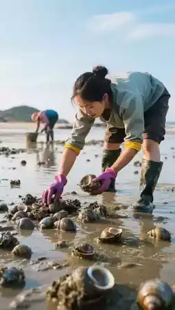 - Capture close-ups of kids digging snails during tide hunting, full of life