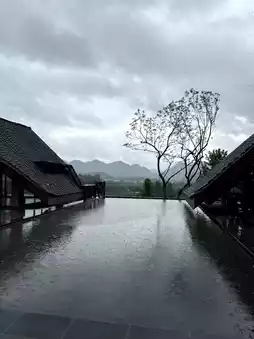 Walk past the water feature beside the spiral staircase, where wooden tables and chairs meet aged brick walls, creating folds of time—every snapshot could grace a magazine cover📸. The 33 guest rooms are nestled into the terrain, with 18 private hot spring rooms, each unique!