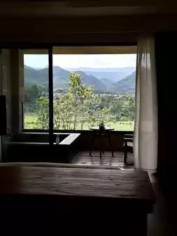 After exiting the Jiaguan highway, drive about three kilometers along the winding mountain road, and you’ll see the guesthouse surrounded by forested mountains~