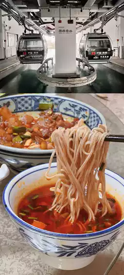 👉I took the cable car today and ate sauerkraut noodles 🍜, feeling very satisfied!