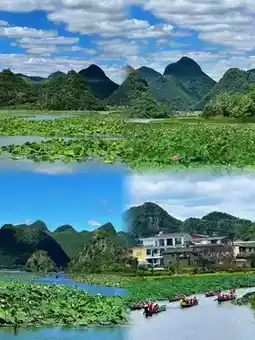 ✅ Puzhehei Lake Willow Leaf Boat: You must experience Puzhehei in summer! For a ticket price of RM170/person, you can sit in a canoe through the 10,000 acres of lotus ponds, and you can also have a water fight with the tourists, which is super joyful. Remember to bring a waterproof bag and quick-drying clothes, or you will have to get wet~ When the lotus flowers are in full bloom in July - August, the lotus flowers are so beautiful that you will be speechless. Be aware, however, that boating is less recommended during non-flowering periods, as the view will be greatly compromised.