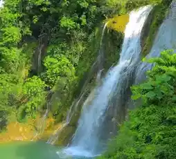 Meaning "where three streams converge" in Zhuang language, this 70-meter waterfall roars so loudly it can be heard miles away.
