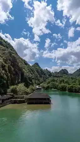 The real-life "Peach Blossom Spring" described by Tao Yuanming. Visitors enter the village by boat through a dark water cave, experiencing preserved Zhuang farming culture and pristine rural landscapes.