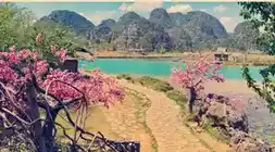 Ancient bridges, peach blossoms, and the lake and mountain scenery blend into one
