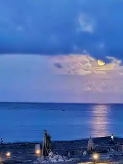 Qixingtan in Hualien is not only captivating during the day with its azure sea views, but its nighttime "moonlit ocean" is truly unforgettable. As the moon slowly rises, its silvery light spills over the Pacific Ocean, with waves shimmering in the interplay of light and shadow, creating a silver pathway that seems to lead to the horizon.