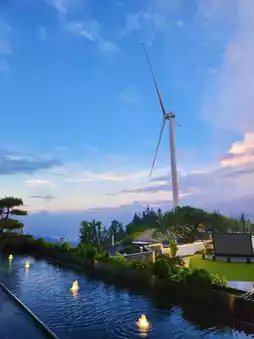 The ever-changing clouds and fog in the mountains create a mesmerizing scene. One moment it's clear skies, and the next, dark clouds may roll in. Regardless of the weather, the beauty is reminiscent of a cinematic landscape, making it a supreme pleasure to lie in bed and watch the wind turbines and forests sway. During breakfast, you may even find yourself enveloped in white clouds. ☁️