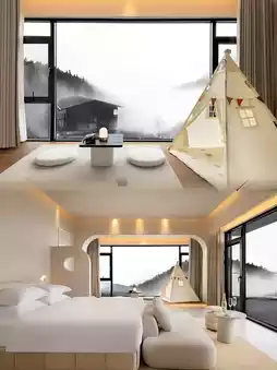 This time, I specially chose a room facing the mountains and the sea of clouds. The room is simple in design but full of high-end feeling. In the morning, I can watch a sunrise on the balcony without leaving home, watching the sun slowly rise from the misty mountains, which is beautiful. The room is very intelligent, and children's supplies are thoughtfully prepared when you check in. It is very comfortable to stay with Ran Zai. I have nothing to do but sunbathe on the camping chair outside the room and enjoy a leisurely holiday life.