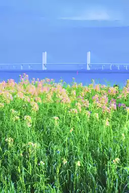 2. Find an angle at the edge of the sea of flowers, where you can capture the beautiful contrast between the sea of flowers and the sea in the distance. The super beautiful sea view and the sea of flowers blend perfectly.