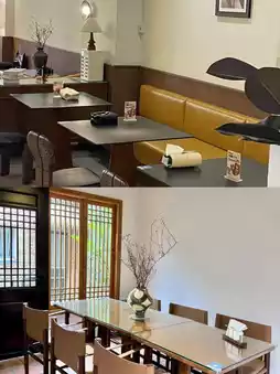 The first floor is a retro-style cafe and a restaurant with a Minnan-style decor.