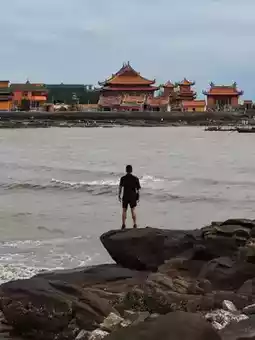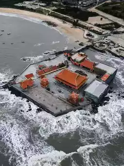 7️⃣&8️⃣ Luojia Temple built on the sea. Before the typhoon arrived, the white waves crashed against the temple's embankment, creating a stunning aerial view! The location for photo 7 is on the rocks next to the Guanyin statue on the west side. Be sure to check the tide times in advance, as the rising tide may cause waves to hit the rocks.
