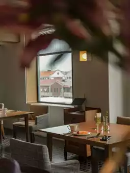 Through the window, you can see the twin towers of Kaiyuan Temple not far away