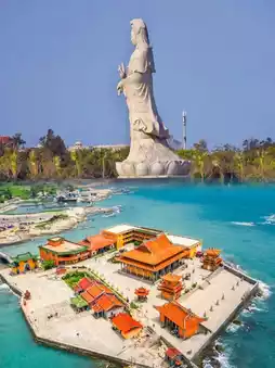 💦 Golden Coast Resort: One of the eighteen scenic spots in Quanzhou, the Guanyin stone statue and the giant cruise ship are very distinctive.