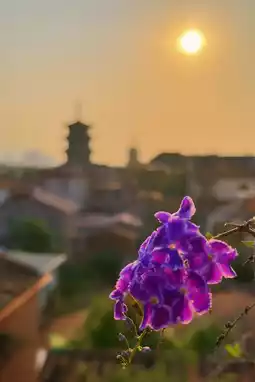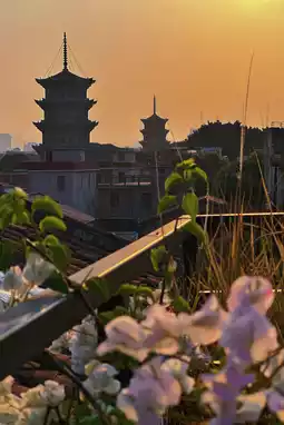 The buildings surrounding the guesthouse are arranged in a picturesque manner. The red walls and ancient houses under the sunset's reflection add a poetic touch. As the sun gradually sinks, the sky transforms into brilliant orange and pink-purple hues, intertwining with the lively atmosphere of West Street. Every casual shot becomes an atmospheric masterpiece! Whether you're capturing the panoramic view of the Twin Pagodas or silhouettes of people against the sunset backdrop, everything turns out amazing!