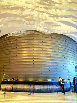 This isn’t just a hotel—it’s a grand ocean liner! The reception desk resembles the bow of a ship, while six towering sails stand opposite the front desk. The lobby is crowned with wavelike crystal chandeliers, and the stargazing bar, designed like a ship’s deck, exudes the elegance of a luxury hotel.