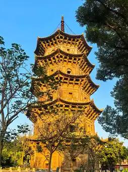 The grand Kaiyuan Temple combines architectural styles from Tang and Song dynasties while incorporating influences from ancient Indian and Islamic cultures, reflecting Quanzhou's historical religious diversity. Its landmark East and West Pagodas (Zhenguo Pagoda and Renshou Pagoda) represent the pinnacle of ancient Chinese stone pagoda architecture - both feature exquisite Buddhist story carvings on their five-story octagonal wooden-structured bodies. Other notable sites include the Mahavira Hall, Sweet Dew Ordination Platform, Scripture Depository, and Master Hongyi Memorial Hall.