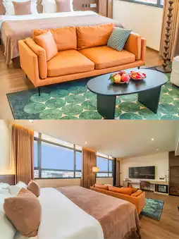 The rooms are cozy and elegant, with thoughtful details everywhere. Mini-bar drinks are complimentary🆓, and smart home devices are fully equipped. The bedding is soft and comfortable, ensuring a great night’s sleep!