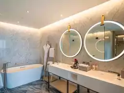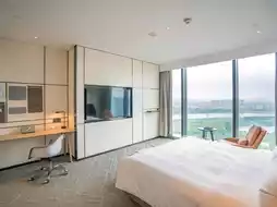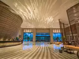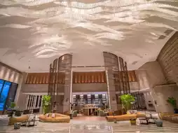 The hotel is designed with maritime culture as its core inspiration. The high-ceilinged lobby features a ship-like structure intertwined with crystal chandeliers, creating the imagery of a ship setting sail. The wave-like flowing art chairs on the ground further immerse guests in the romantic atmosphere of the Maritime Silk Road.