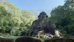 Song dynasty stone carvers tamed a five-meter-high natural giant rock into a seated statue of Laozi with just their hands. His right hand rests on his knee, left hand supports a table, the folds of his robe hanging like a frozen waterfall. The peach-shaped nose is polished shiny by visitors’ fingerprints, the warmth of blessings soaking into the stone marrow. Before noon, sunlight tears through the clouds, and when the wide-angle lens frames the statue against the blue sky, the millennium smile ferments into honey.