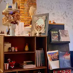 This is a coffee shop in the old city, quiet in the bustling city. There are several dogs brought by customers at the door of the store. The owners hold coffee cups, and they lie quietly beside the seats and stick out their tongues, which is very cute.