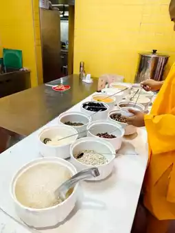 Around 5 PM, the restaurant suddenly became lively as a group of young disciples entered for their meal. Curious, I asked a staff member and learned that this place was not only a restaurant but also their dining hall. This revelation added a layer of depth and cultural richness to the experience.