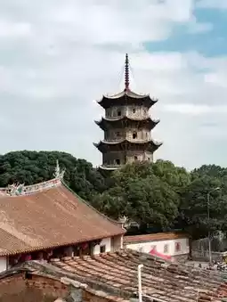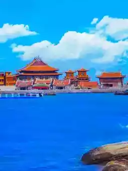 Red brick ancient houses and modern rooftops, flower hairpins and the Buddhist kingdom on the sea