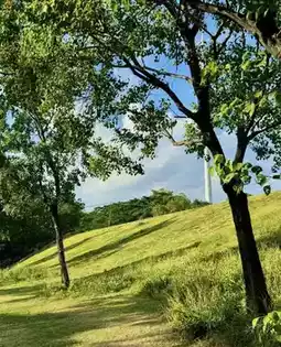 A park with a strong Miyazaki vibe, green hills blending with blue skies 🍃