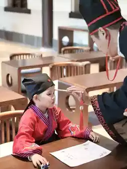 First Writing Ceremony, experiencing traditional culture: Dressing Properly - Vermilion Enlightenment - Drum Beating for Aspiration - Tracing Characters