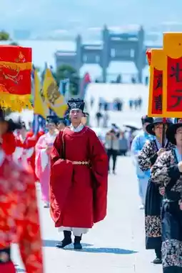 With banners and guards leading the way, the “Top Scholar” dressed in magnificent Hanfu stands proudly. Follow the grand parade, walk along the pilgrimage avenue dyed in autumn colors, cross the Erli Gate, stand solemnly before the statue of Confucius, perform the bowing ceremony, pay respects to the ancient master, and pray for good luck.