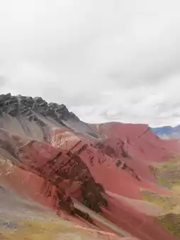 A vast expanse of red earth stretches behind the Rainbow Mountain!