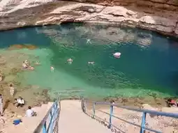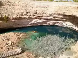 The Bimmah Sinkhole in Oman, located about an hour southeast of the capital Muscat, is a massive natural pool formed by a collapsed limestone bedrock. It's a signature natural attraction in Oman.