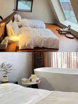 - Jiangshan Yue Ban Qifeng B&B, the Internet celebrity bathtub mountain view king bed room is 660 yuan/night, and the family suite is 1,200 yuan/night. You can enjoy a comfortable life in the mountains and rivers.
