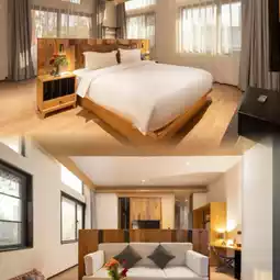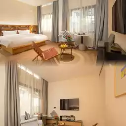 The room design is very stylish, the layout and furniture are reasonably arranged, the facilities are intact, there is plenty of hot water, it is equipped with a Mousse mattress and a small refrigerator, the bedding is very comfortable, the floor height is very high, and it is particularly comfortable to live in.