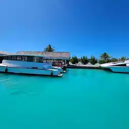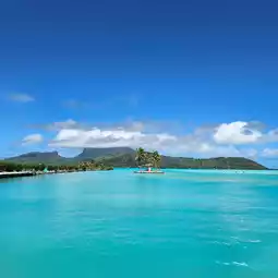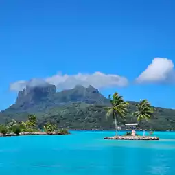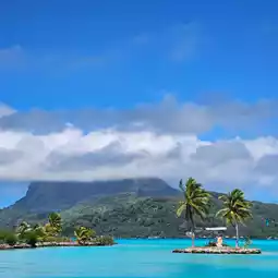 The blue sea and blue sky in front of me, the water is clear and transparent, like a blue mirror, reflecting the clouds in the sky. The surrounding coral reefs and tropical fish add to the exotic atmosphere of this place.