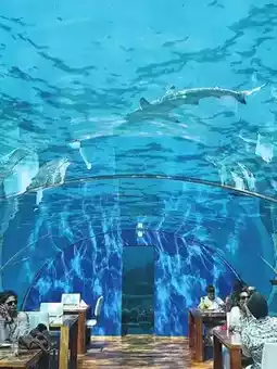Nurse sharks and I are both tired of watching, there are many sharks above the underwater restaurant, and sharks will also swim by when eating by the sea.