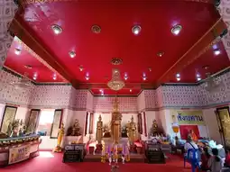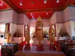 Luang Pho Kaenchan, the Buddha statue holding an alms bowl, is enshrined in a four-sided pavilion made of bronze. The lower part is carved from fragrant wood, sandalwood. Luang Pho Kaenchan is different from other Buddha statues holding alms bowls in that Luang Pho's alms bowl looks like it is being held in an alms bowl bag.