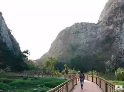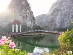 Located in the limestone mountain area in Khao Ngu Public Park, this place used to be a source of blasting and crushing rocks. The blasting and crushing of rocks in this area was cancelled, causing Khao Ngu to become an abandoned mine. Ratchaburi Province has therefore developed Khao Ngu into a public park. There will be a long bridge along the water for walking and sightseeing, suitable for relaxation.