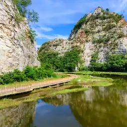 🏞️ Take a leisurely walk and enjoy the view of the towering limestone mountains.