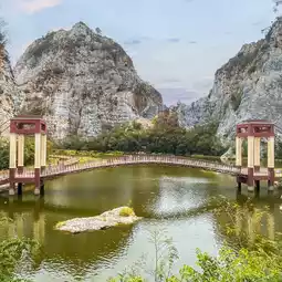 For those who love nature, taking a leisurely walk with beautiful, unseen views, you must come to Khao Ngu Stone Park in Ratchaburi Province! This is an old stone quarry that has become a great tourist attraction. There is a classic bridge over the water, surrounded by tall rocky mountains, and a viewpoint for taking panoramic photos. 📸✨