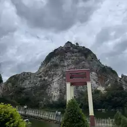 Khao Ngu, also known as Khao Ngu Stone Park, is located in the limestone mountain area within Khao Ngu Public Park in Ratchaburi Province. This place was originally a quarry site. Inside the park, you'll find rocky cliffs and small ponds, which can be seen from afar. For activity enthusiasts, the park also offers paddle boat cycling, ensuring a delightful atmosphere. The entrance to Khao Ngu Public Park features a long riverside bridge for strolling and enjoying the scenery, making it a perfect spot for relaxation and taking chic photos.